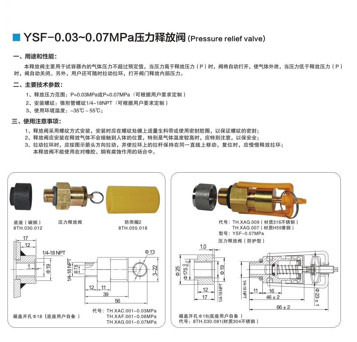 YSF-0.03MPa~0.07MPa 压力释放阀