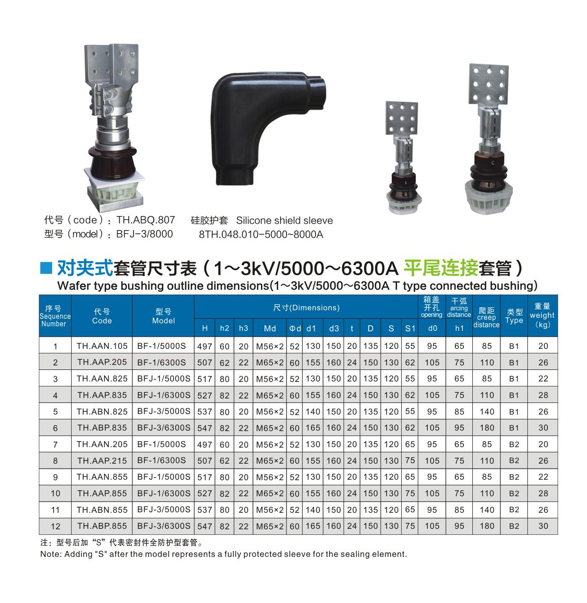 1~3kV/5000~6300A平尾连接套管