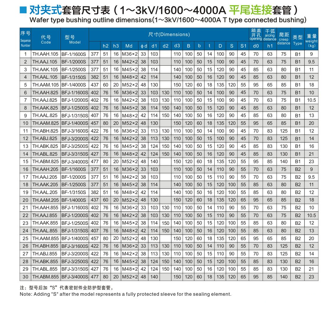 1~3kV/1600~4000A平尾连接套管