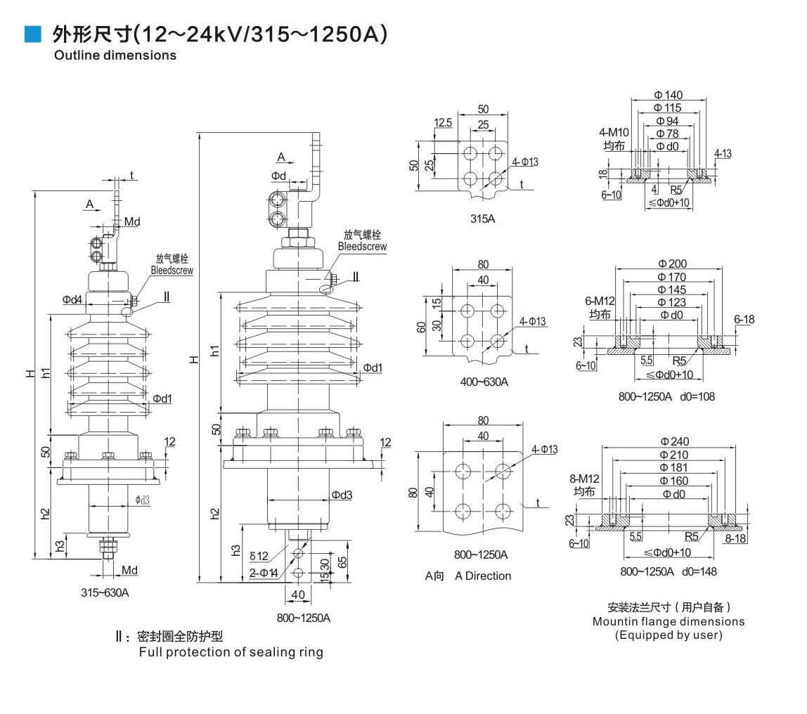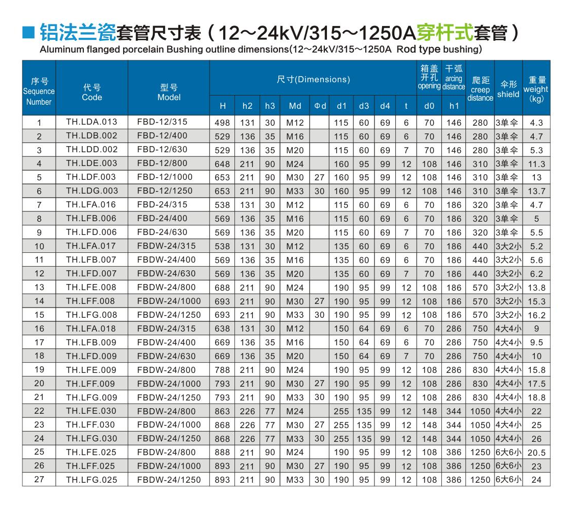 铝法兰瓷套管12~24kV/315~1250A穿杆式套管