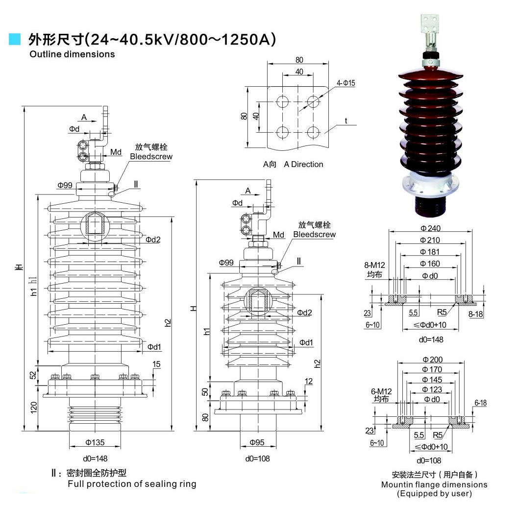 铝法兰瓷套管24~40.5kV/800~1250A穿缆式套管