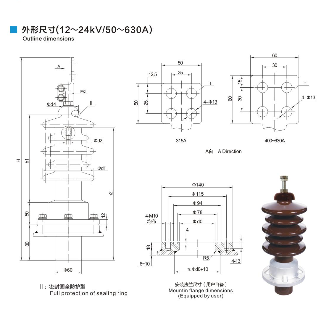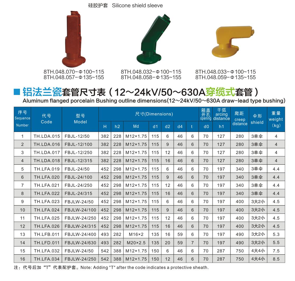 铝法兰瓷套管12~24kV/50~630A穿缆式套管
