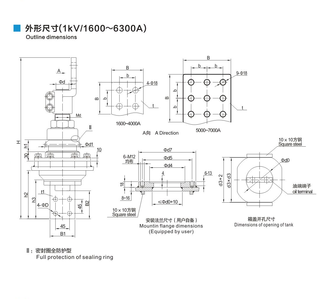 铝法兰瓷套管1kV/1600~6300A铲形连接套管