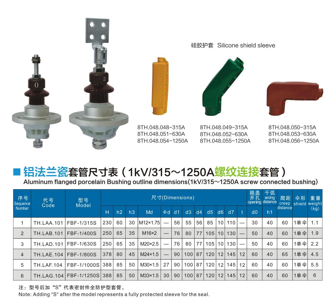 铝法兰瓷套管1kV/315~1250A螺纹连接套管