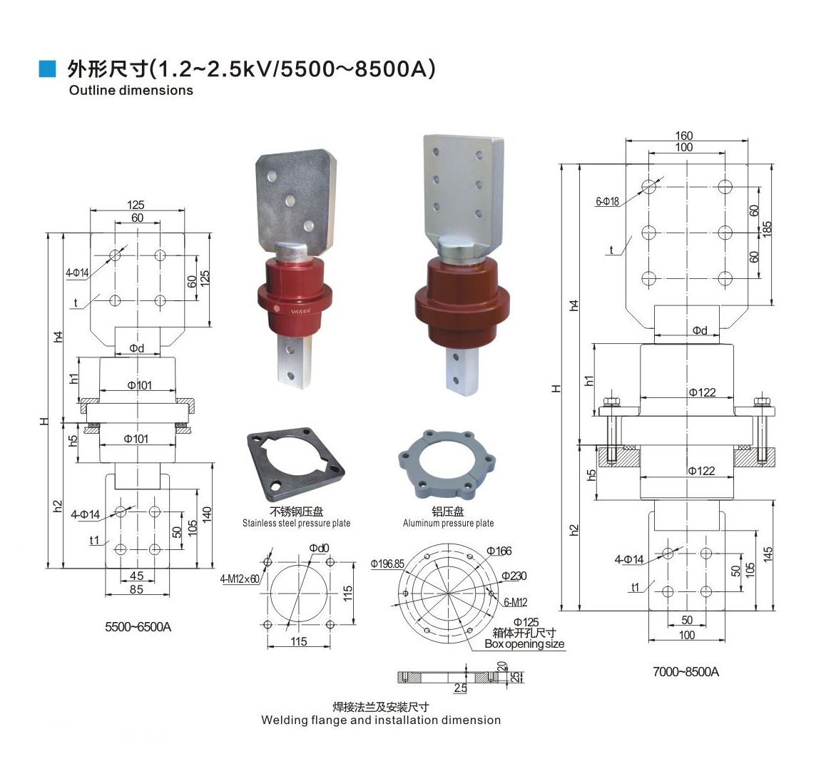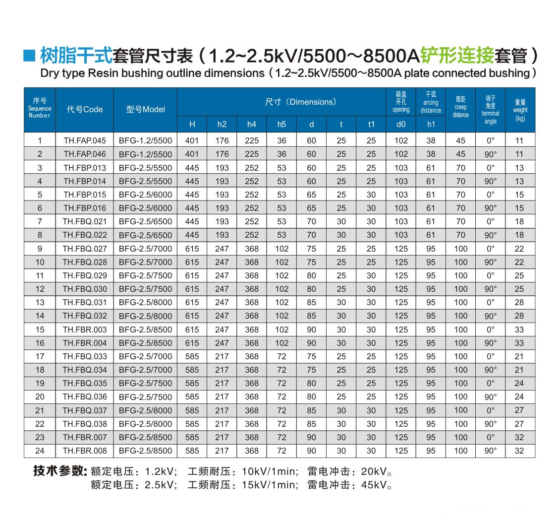 树脂干式套管1.2~2.5kV/5500~8500A铲形连接套管