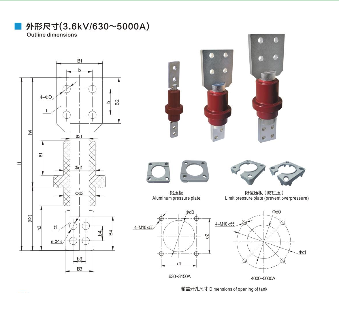 树脂干式套管3.6kV/630~5000A铲形连接套管