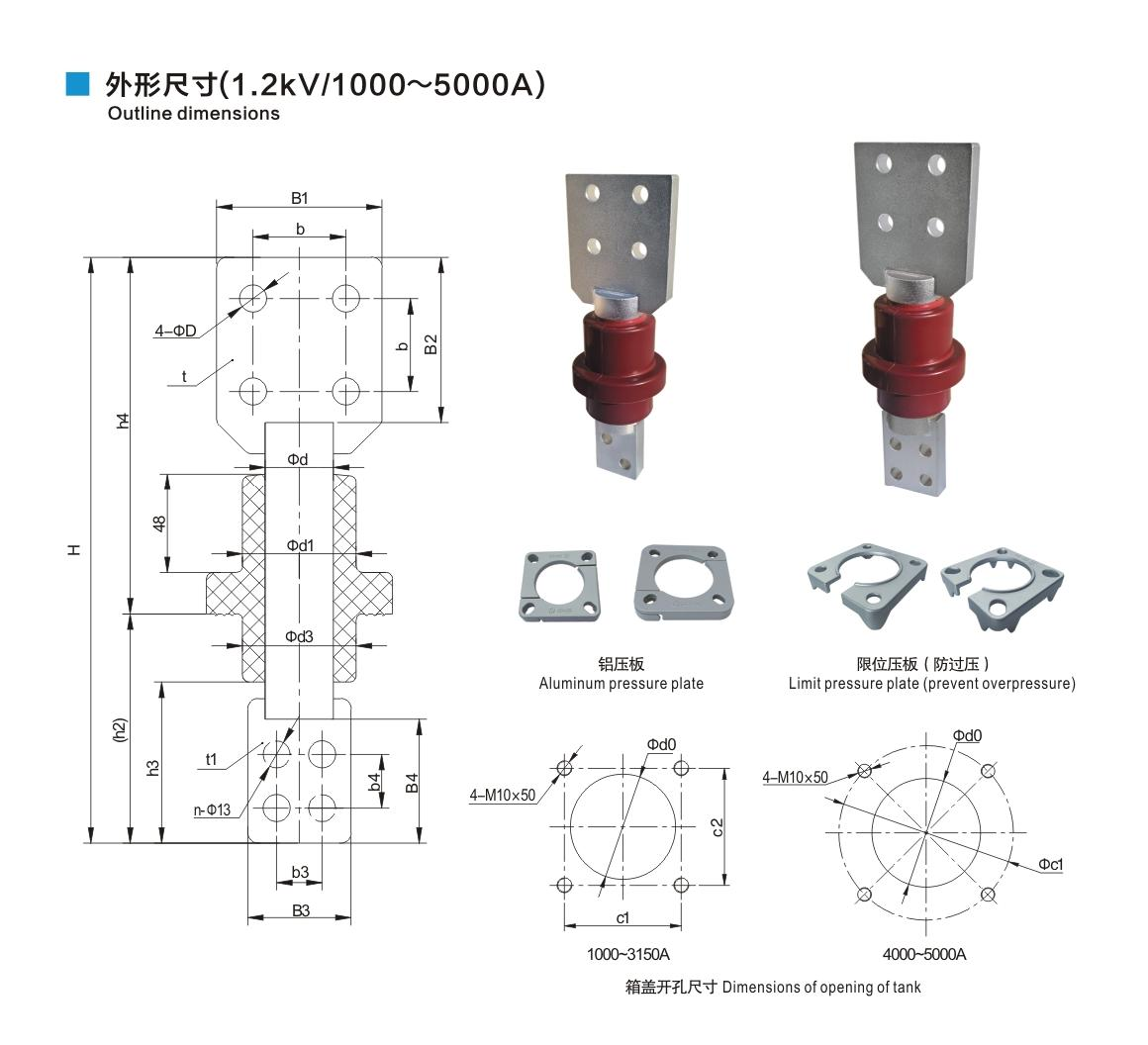 树脂干式套管1.2kV/1000~5000A铲形连接