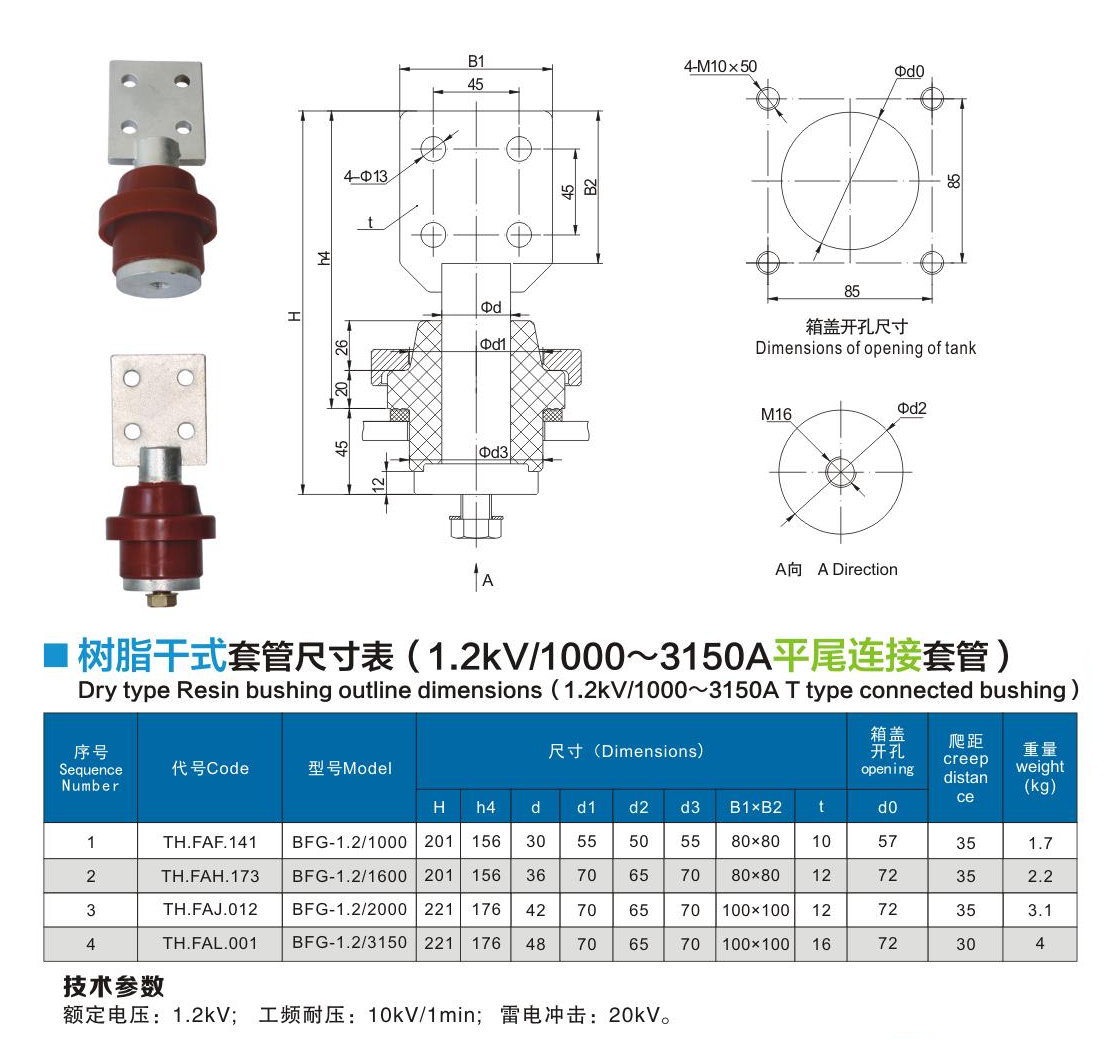 树脂干式套管1.2kV/1000~3150A平尾连接套管