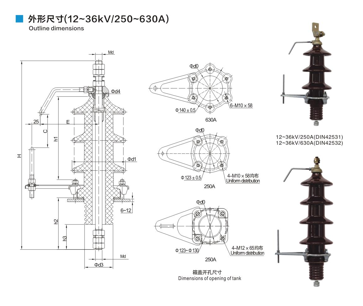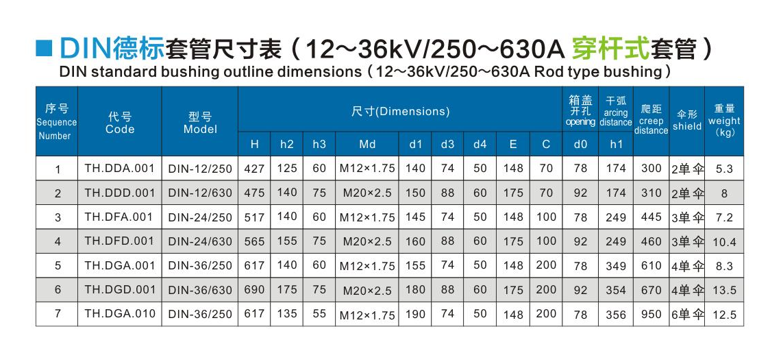 DIN德标套管12~36kV/250~630A穿杆式套管
