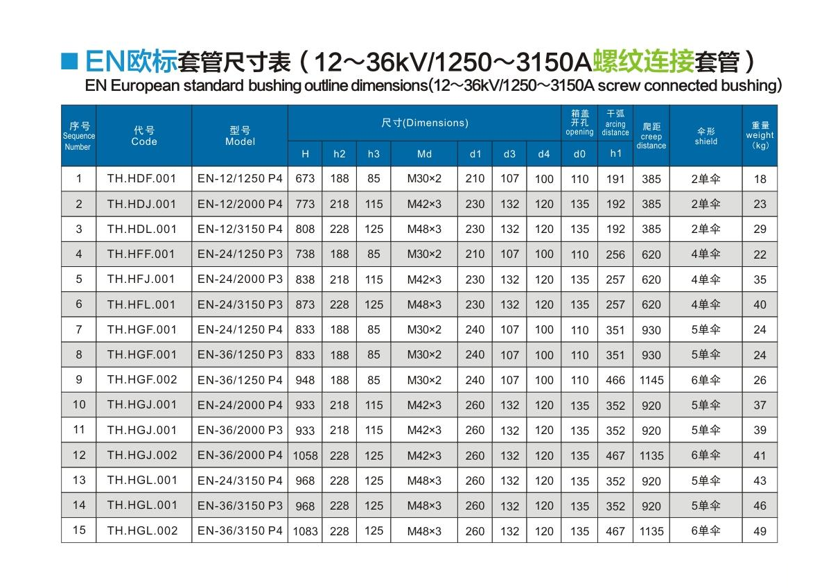 EN欧标套管12~36kV/1250~3150A螺纹连接套管