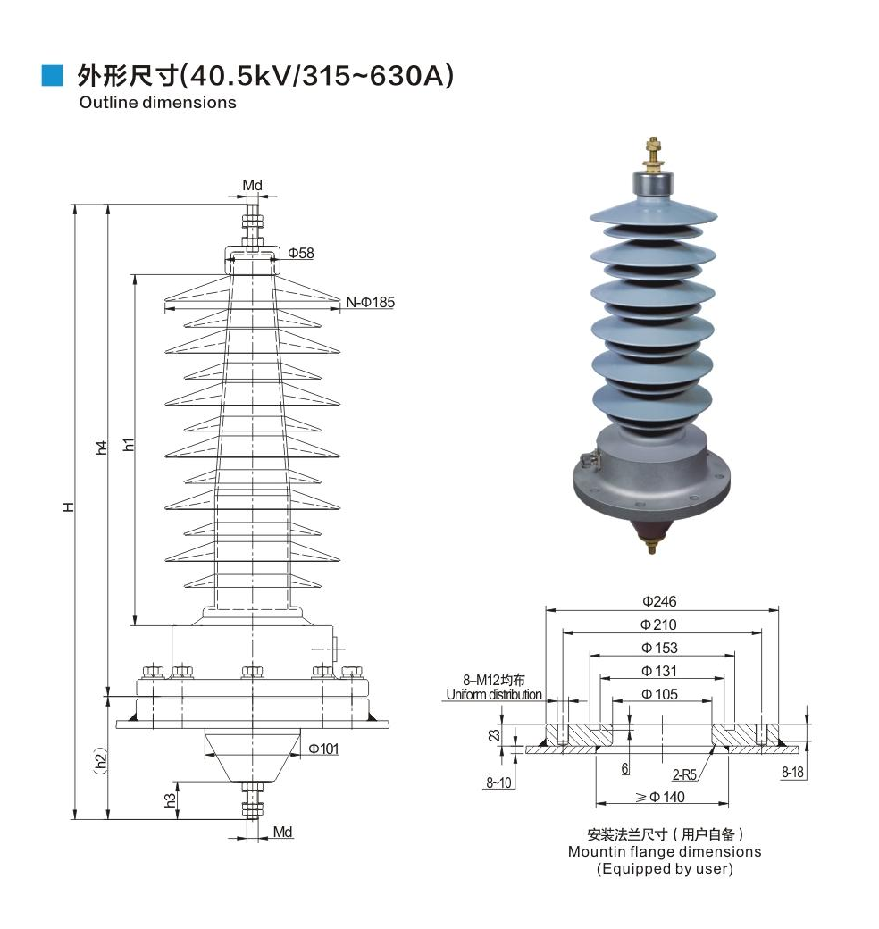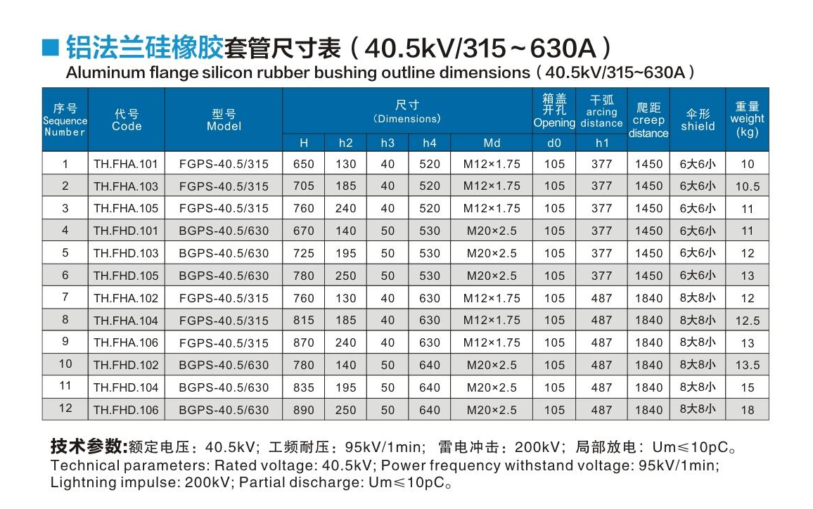 铝法兰硅橡胶套管40.5kV/315~630A